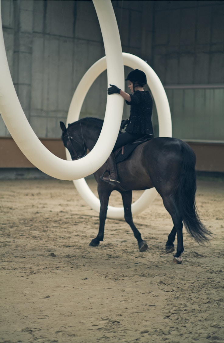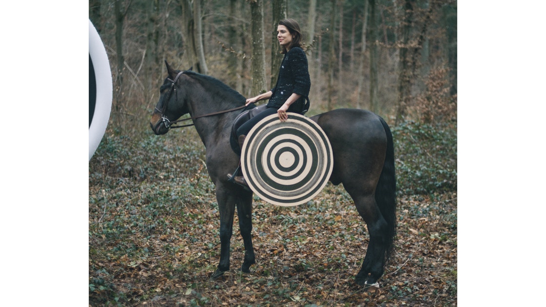 またグラフィックにはミュージシャンのセバスチャン・テリエと、シャネルのアンバサダーを務めるシャルロット・カシラギが登場。コレクションに登場するブラック・ツイード・ジャケットに身を包んだシャルロット・カシラギが、グザヴィエが手がけたオブジェの中を馬とともに駆け抜けるヴィジュアルは必見だ。