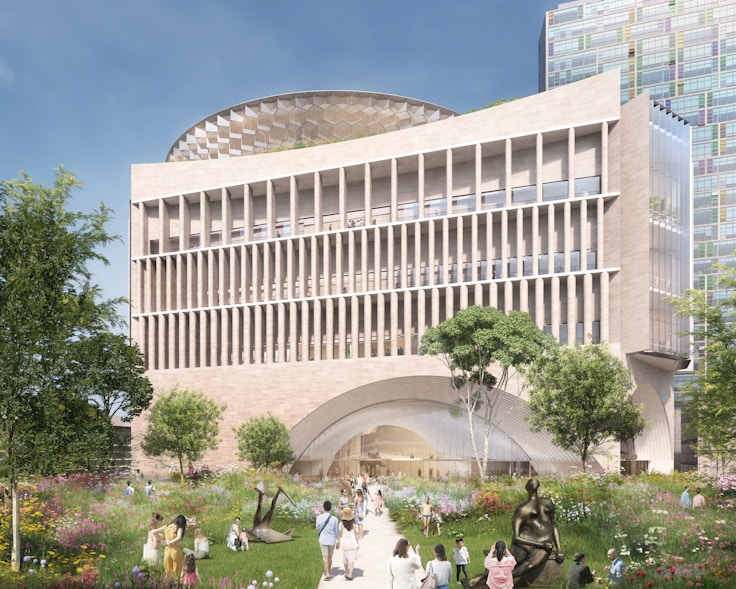 コンペにより選ばれたのは、オーストラリア人建築家アンジェロ・カンダレパスが率いる建築、デザイン、エンジニアリングチーム。3万平米を誇る新館は、アーチ型の入口、高さ40メートル以上におよぶ球状のホール、そして屋上テラスや彫刻庭園などを含む1万3000平米以上の展示スペースなどによって構成される。