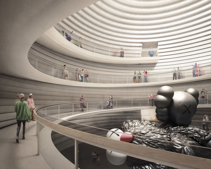 建物の中心部にある巨大な球状ホールは、大規模なアート作品が展示できるスペースであると同時に、螺旋状の通路を通って建物内を移動することができ、最終的には屋上テラスにつながる。屋上からは、メルボルンの中心街や公園などの景色を眺めることができ、館内には教育スペース、スタジオ、作品保存のための研究室も設けられる。