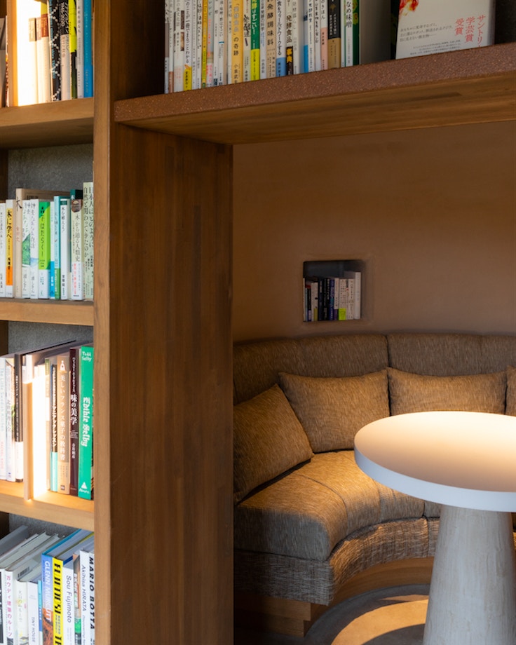 本施設の選書は、選書家・川上洋平が手がけた。オープン時は約3000冊が並び(最大収容可能数は8000冊)、自然や農的な暮らしに関するものを中心に、詩、哲学、歴史、宗教、科学や経済にも独自の広がりやつながりが感じられる選書がされている。