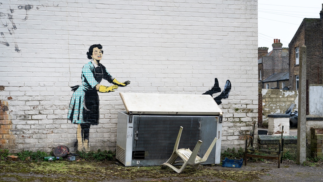 2020年10月にイギリス・ノッティンガムの美容院の壁に発見されたバンクシーの作品は、翌年に建物の所有者によって「6桁の金額」で販売。18年12月に同国ウェールズ地域のガレージに出現した作品《季節の挨拶》も数ヶ月後に10万ポンドで売却された。