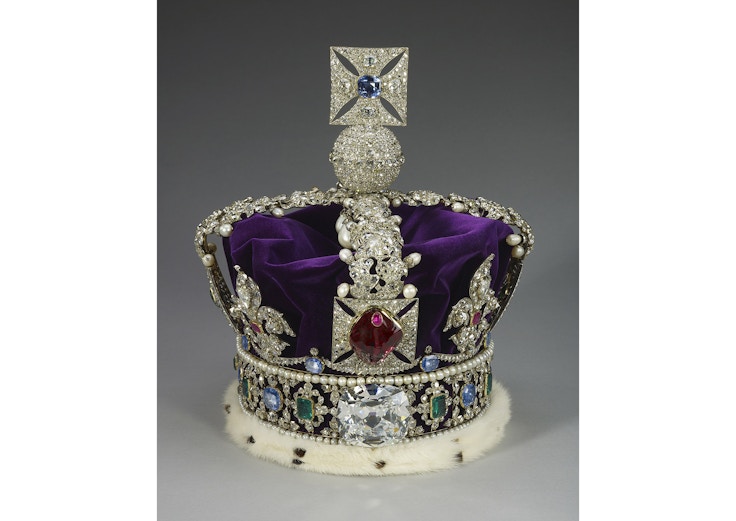 この王冠は1937年のジョージ6世の戴冠式のためにガラードによってつくられた。「カリナンⅡ」以外にも重要な宝石が多く使われている。正面中央の末広十字架の「黒太子のルビー」(実際はルビーではなくレッド・スピネル)は長さ5センチもある大きな石で、14世紀に黒太子と呼ばれていたエドワード皇太子に贈られた歴史を持つ。上部の十字架中央にはめられた「セント・エドワーズ・サファイア」はエドワード懺悔王の指輪に使われていたもので、1163年に彼の墓から発見されたと言い伝えられている。
