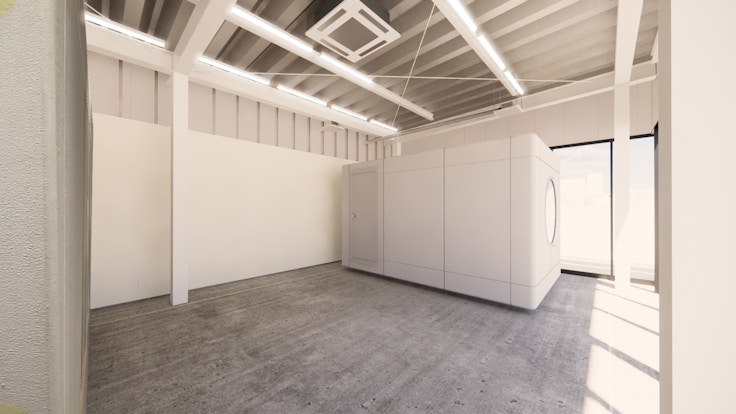 いっぽうの「CAPSULE B - A1006 (SKELETON)」は、解体したカプセルの姿を残した、スケルトン・カプセル。生々しい壁面塗装と剥き出しの鉄骨に囲まれた、わずか10平方メートルのミニマルな空間に、アーティストの様々なアイデアをインストールする。