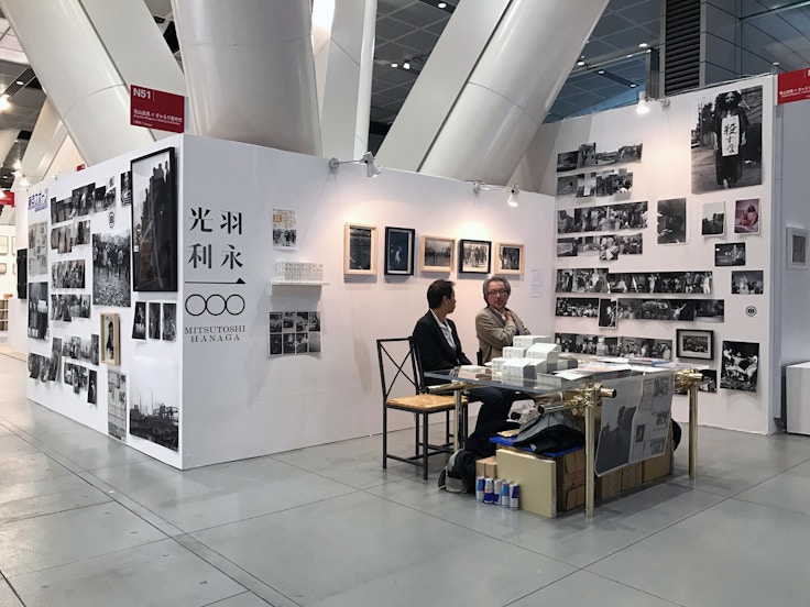 また、青山目黒×ぎゃらり壼中天は、昭和を生きた写真家・羽永光利をフィーチャー。1960〜70年代を中心に、劇団や前衛芸術、学生運動など様々な現場を記録し続けた羽永の写真を、3つの壁面を覆い尽くすように展開させている。激動の時代を映したモノクロ写真の数々が、現場に介入する羽永のごとく、フェア会場の一角で強い存在感を示していた。