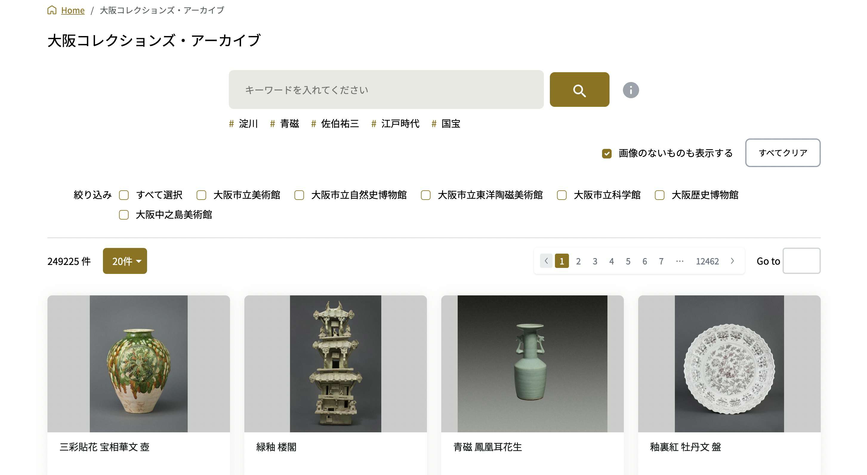 大阪市立美術館・大阪市立自然史博物館・大阪市立東洋陶磁美術館・大阪市立科学館・大阪歴史博物館・大阪中之島美術館の6館が、各館の収蔵品をまとめて公開するウェブサイト「デジタル大阪ミュージアムズ」をオープンした。