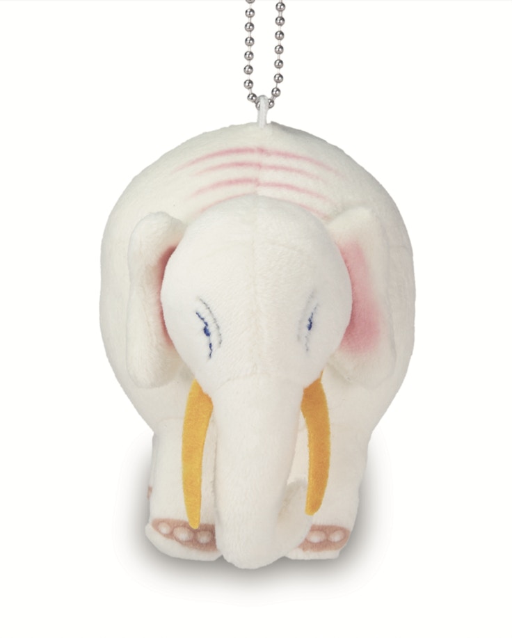 ぬいぐるみ(1500円)は同作の右隻に描かれた白象をモチーフにしたもの。ボールチェーンがついているのでカバン等につけてマスコットとして持ち歩くことできるほか、足にはビーズを入れて重心をつくっているので自立させることもできる。