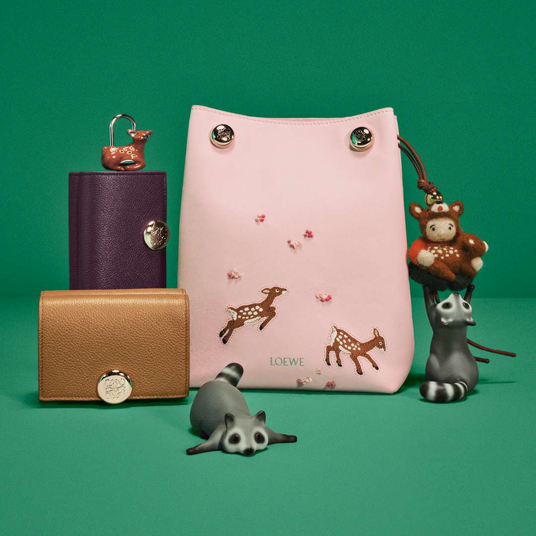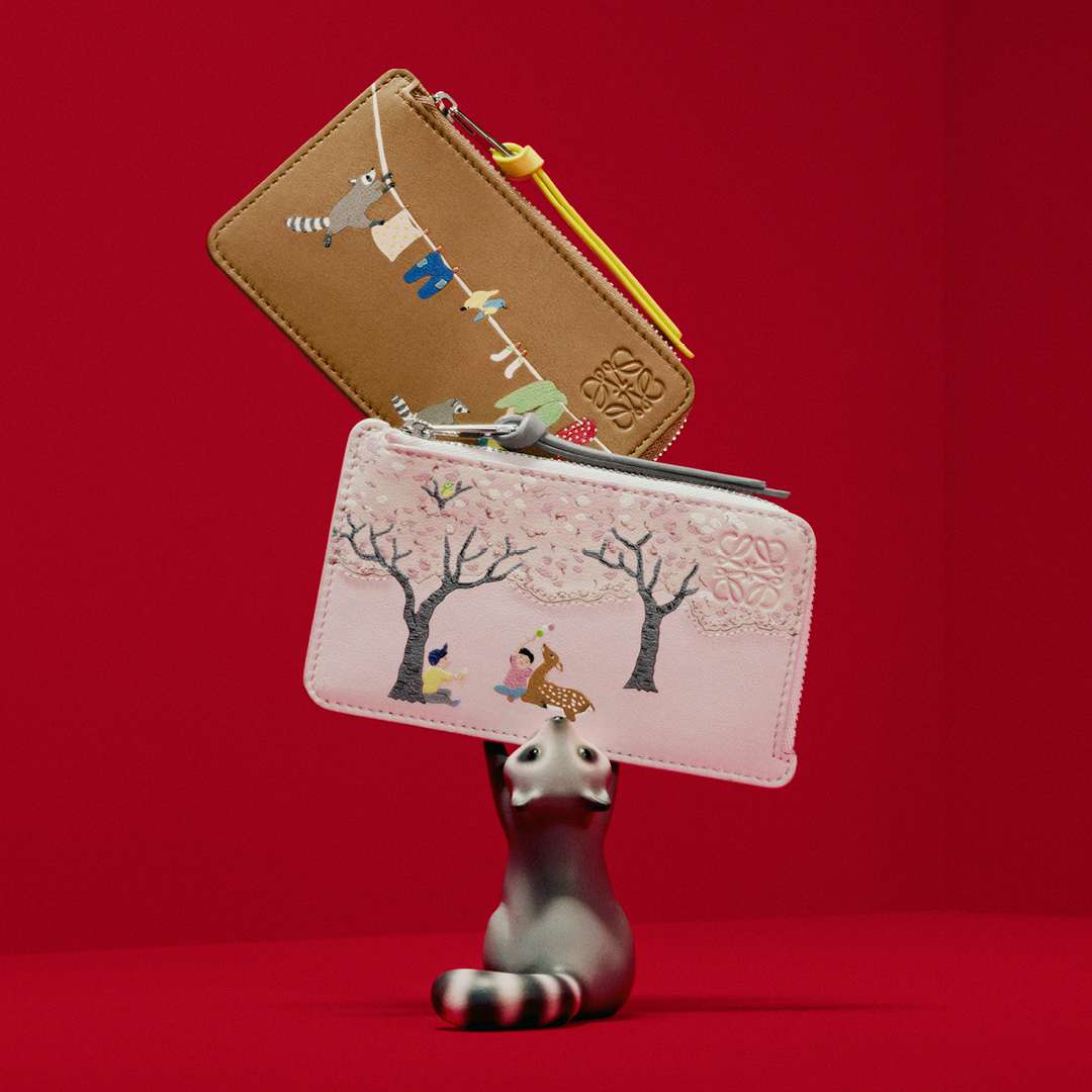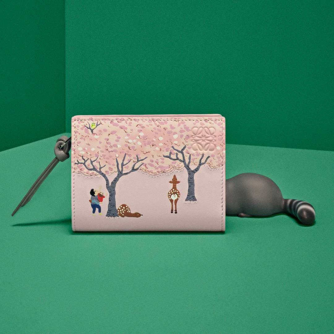 本コレクションは、バッグ「アマソナ23 クロップド」や「ハンモック コンパクト」のほか、革小物やウェアなど多岐にわたる。カサロエベ銀座では、シカを描いたブロッサムピンクのハンモック コンパクト、アライグマのハンモック コンパクト、そしてスナ・フジタの世界にインスパイアされたシアリングのコートを販売。2月5日からは、財布、カードホルダー、キーケースの購入者に、スナ・フジタの花見のイラストレーションに着想を得た団子のチャームが配布される。