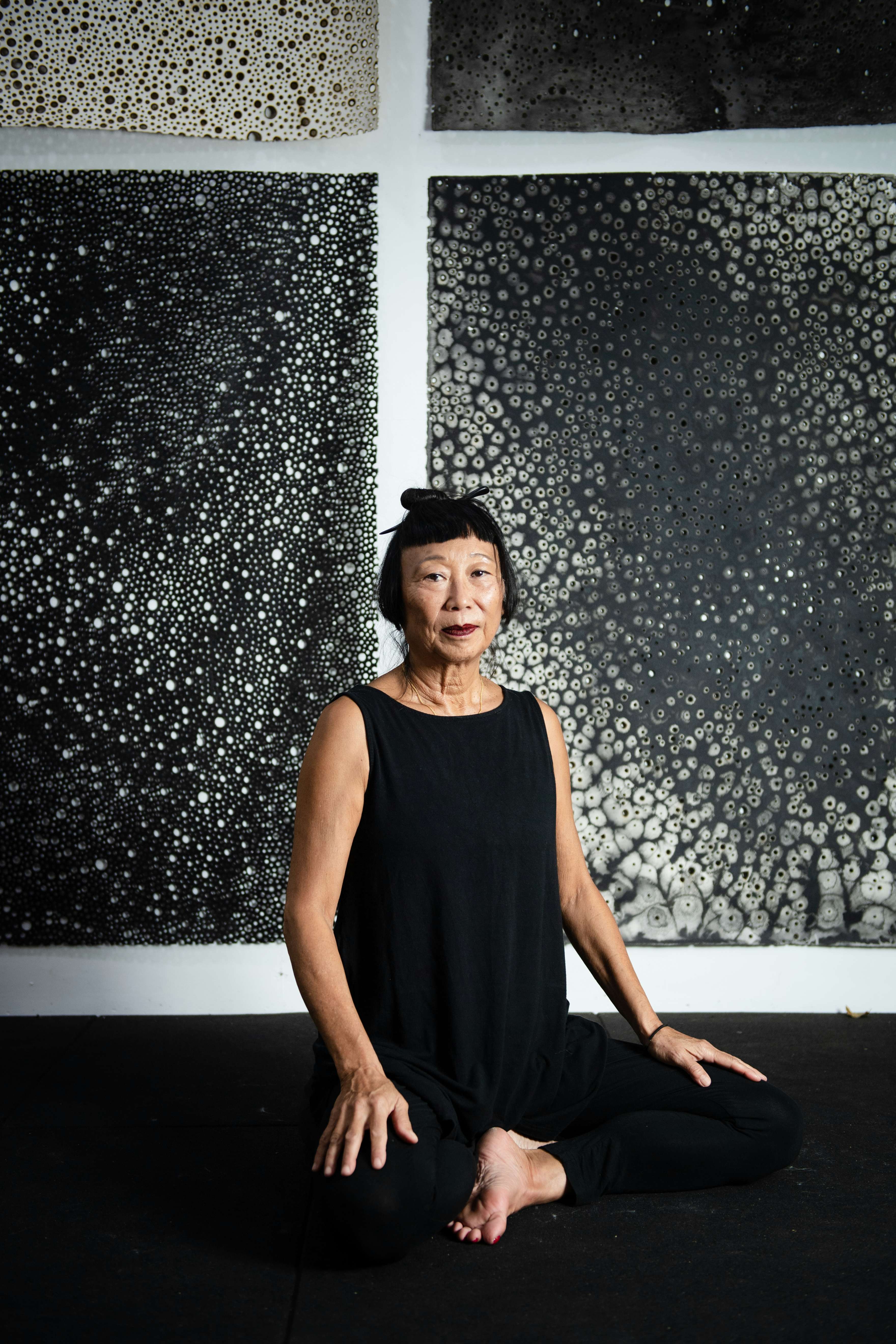 リンディ・リーは1954年、オーストラリア・ブリスベン生まれ。40年以上にわたり、絵画、インスタレーション、彫刻などを制作し、近年では公共空間への作品設置で国際的に注目を集めている。中国からオーストラリアに移住した両親のもとに生まれ、移民二世として経験したことや、道教や禅宗への深い関心、そして太古の姿をいまに残すオーストラリアの自然との共生が、その独自の創作世界をかたちづくっている。