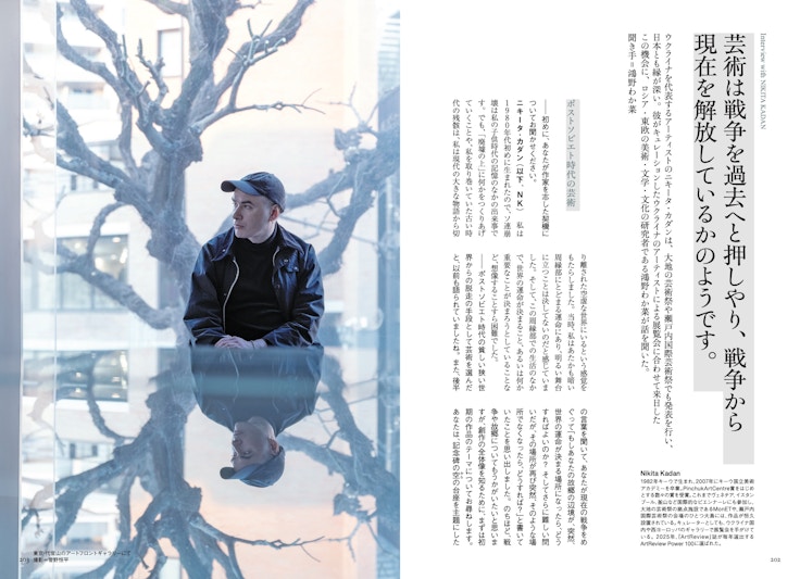 アーティスト・インタビューは、大地の芸術祭や瀬戸内国際芸術祭でも発表を行い、日本とも縁が深い、ウクライナを代表するアーティストのニキータ・カダン。彼がキュレーションしたウクライナのアーティストによる展覧会に合わせて来日したこの機会に、ロシア・東欧の美術・文学・文化の研究者である鴻野わか菜が話を聞いた。
