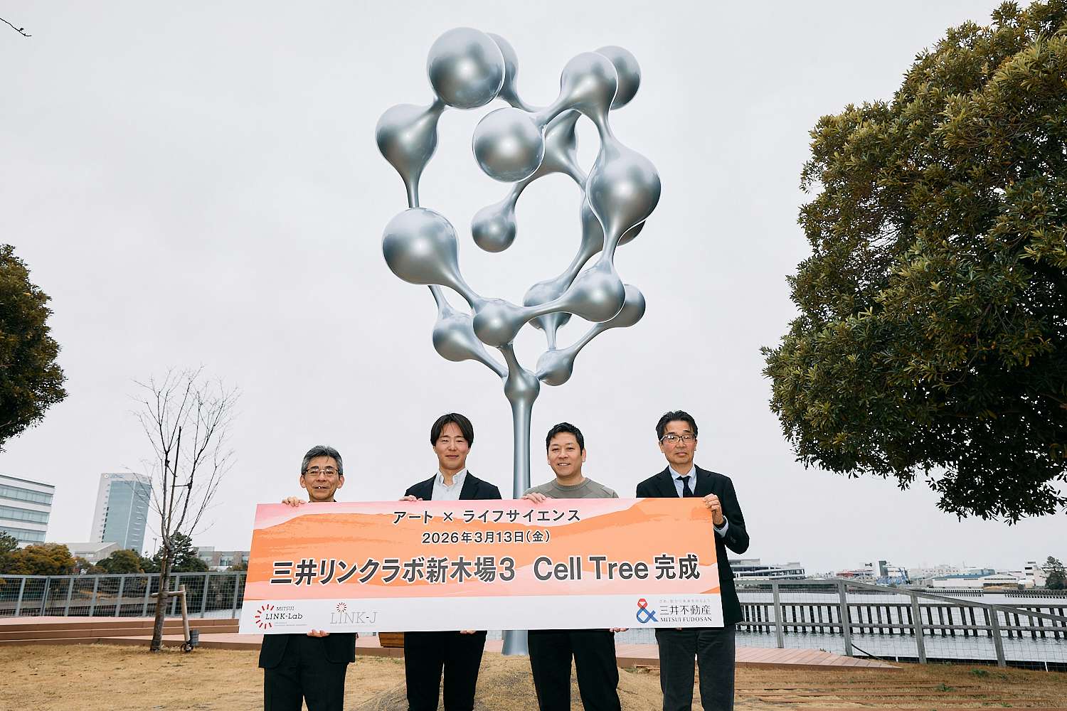 三井不動産が展開する賃貸ラボ&オフィス施設「三井リンクラボ新木場3」で、彫刻家・名和晃平による新作《Cell Tree》(2026)が公開された。