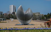 大阪・関西万博の会場内「光の広場」に展示されていた陶芸家・建築家の奈良祐希による巨大作品《祈器》が、石川県金沢市の石川県政記念しいのき迎賓館前に設置された。