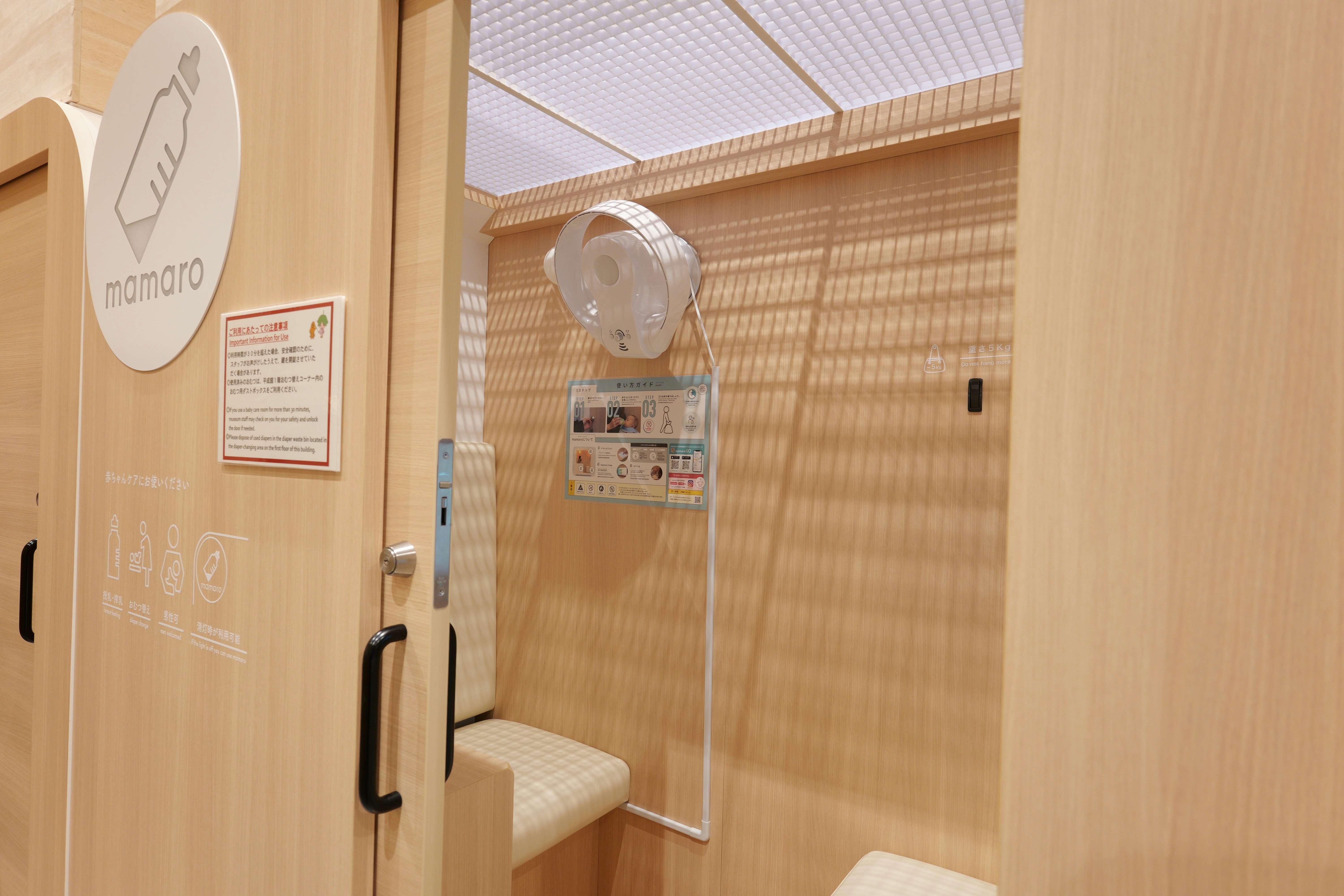 ファミリースペースは、主に未就学児(0~6歳)の子供とその保護者を対象としており、落ち着いた空間で親子が一緒にリラックスして過ごすことができる休憩スペースだ。乳児の授乳やおむつ替えが可能なベビーケアルームも2棟を用意。またファミリースペース付近には紙おむつ(ベビー用)の自動販売機も設置し、万が一の際にも対応できる環境を整えている。