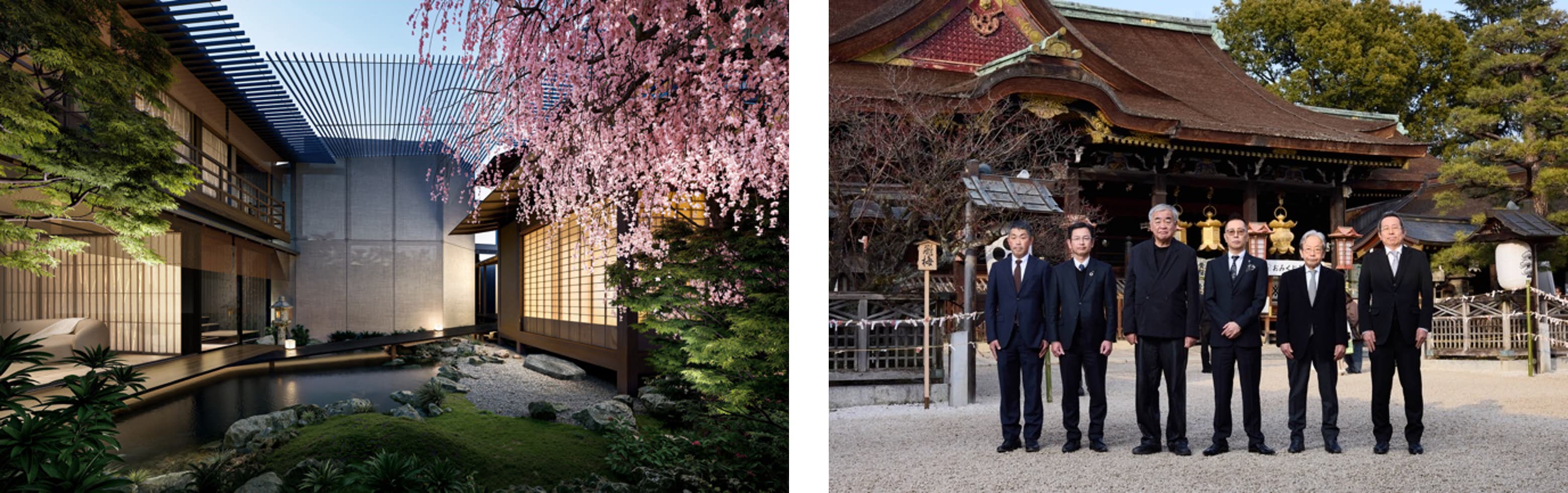再生プロジェクトには、建築家・隈研吾がデザインスーパーバイザーとして参加。さらに、社寺建築で知られる金剛組、数寄屋建築の名匠である中村外二工務店、作庭を担う御庭植治など、日本建築文化を支えてきた専門家が集結する。加えて、仏師の江里康慧が象徴的な彫刻を手がける。