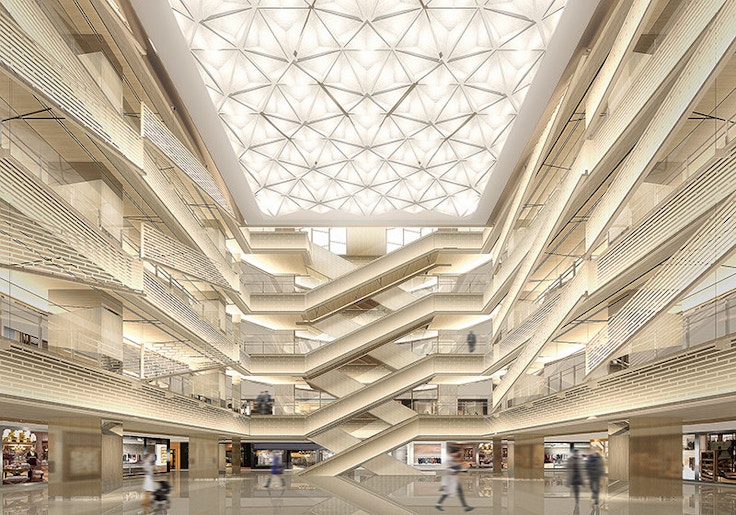 銀座の中央通り沿いに開業する「GINZA SIX」は、延床面積約14万8700平方メートル、商業施設面積は銀座最大となる約4万7000平方メートルの巨大建築だ。基本設計と外観デザインは東京国立博物館法隆寺宝物館をはじめ、ニューヨーク近代美術館新館、豊田市美術館、京都国立博物館平成知新館など、数々の美術館建築でも知られる谷口吉生が担当。ファサードは日本の美を意識した「ひさし」と「のれん」をイメージしたデザインとなる。またロゴはグラフィック・デザイナーの原研哉が手がけている。