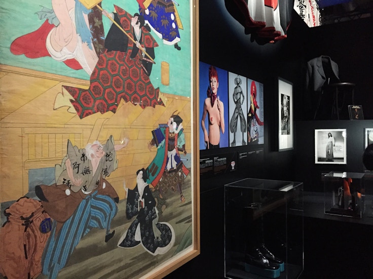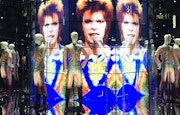 また、本展の大きな特徴のひとつに、その斬新なAV演出効果を挙げることができるだろう。音響・映像監修は、2012年のロンドン五輪開会式の演出にも関わった59プロダクションが務めており、入場者は一人ひとりにヘッドフォンが手渡される。対応する展示の前に立つと、音楽や、ボウイのコメント、インタビューが自動的に流れてくるという手法が取り入れられており、ボウイの世界により深く没入できる仕組みだ。本展クライマックスとなる「ショウ・モーメント」セクションでは、壁一面に四角いスクリーンと衣装が入ったボックスが積み重ねられ、部屋全体でライブ・パフォーマンスを体験してほしい。