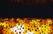 4階には体験型インスタレーション《無限の彼方へかぼちゃは愛を叫んでゆく》(2017)が設置。これは1965年の《無限の鏡の間-ファルスの原野》以降、草間を代表するシリーズとなった「ミラールーム」の最新作であり、暗闇の中で、無数のカボチャが明滅を繰り返す様は圧巻だ。 草間は本作について、「この広大なカボチャ畑を見てこれからの人間の生き様を是非見つけてください。そして、みなさん自身の人生の生き様を見いだしてください」と言葉を寄せている。