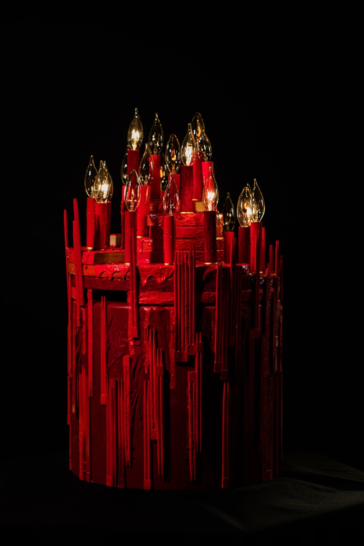 また《百年のfuuu.》は真っ赤なシャンデリアを思わせるオブジェ。タンクのこれまで百年とこれからの百年をテーマにした本作については、「イメージソースは自分が昔から好きだったうヴェネチアングラスのシャンデリアです。この作品をご覧になる方が、”fuuu”と息を吹きかけることで新しい命を吹き込むようなイメージ。これまでの百年もこれからの百年も”タンク”には途切れることのない命が吹き込まれ、火は消えることがありません」としている。