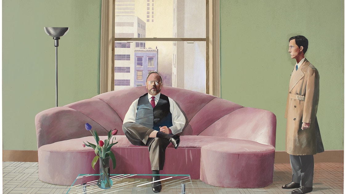 1969年に制作された本作は、ホックニーが68年から75年までに7点制作した、2人の人物を描いた肖像画シリーズのひとつ。昨年11月に約102億円の価格で現存アーティストとしてのオークションレコードを更新した、同シリーズの《芸術家の肖像画―プールと2人の人物―》(1972)に次ぐ、ホックニーのオークション過去最高額の2番目となっている。また本作の落札は、このイヴニングセールの総売上の約5割を占めている。
