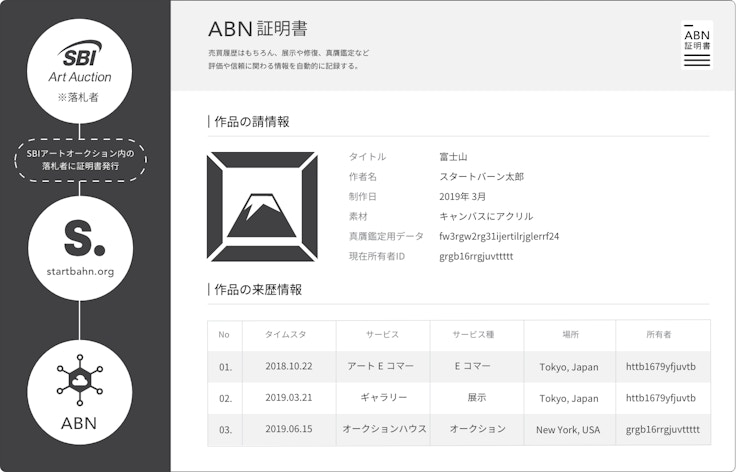 スタートバーンが運営するブロックチェーン証明書発行サービスは、国内外の他のブロックチェーンネットワークとの互換性があるため、より美術品を安心して購入できる、あるいはブロックチェーン証明書自体が作品の価値を高めるといった展望も見込むことができるという。