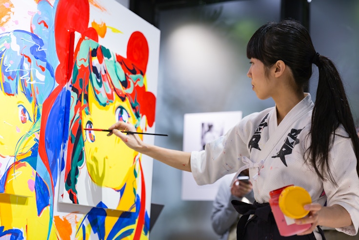 愛☆まどんなは、デビュー以来一貫して「美少女」だけを自分の感情を代弁する究極のモチーフとして描き続けているアーティスト。2007年に秋葉原の路上でのゲリラライブペインティングのパフォーマンスを開始し、その後、国内外での作品発表に加え、アイドル、ミュージシャン、ファッションブランドとのコラボレーションを展開してきた。自身の考案した技法「アニメティックレイヤードペインティング」を発表するなど、縦横無尽に多様な表現の幅を広げている。