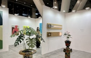 例えば、今年のフェアでは、タカ・イシイギャラリーがスターリング・ルビーの高さ2.6メートルの彫刻や新作絵画、19年のターナー賞受賞作家オスカー・ムリーリョの絵画、いけばな草月流の創始者・勅使河原蒼風による屏風などを展示。TARO NASUのブースでは、コンセプチュアル・アートの巨匠ローレンス・ウィナーや、今年1月までプラダ青山店で個展を開催したサイモン・フジワラなどの作品も印象的だった。