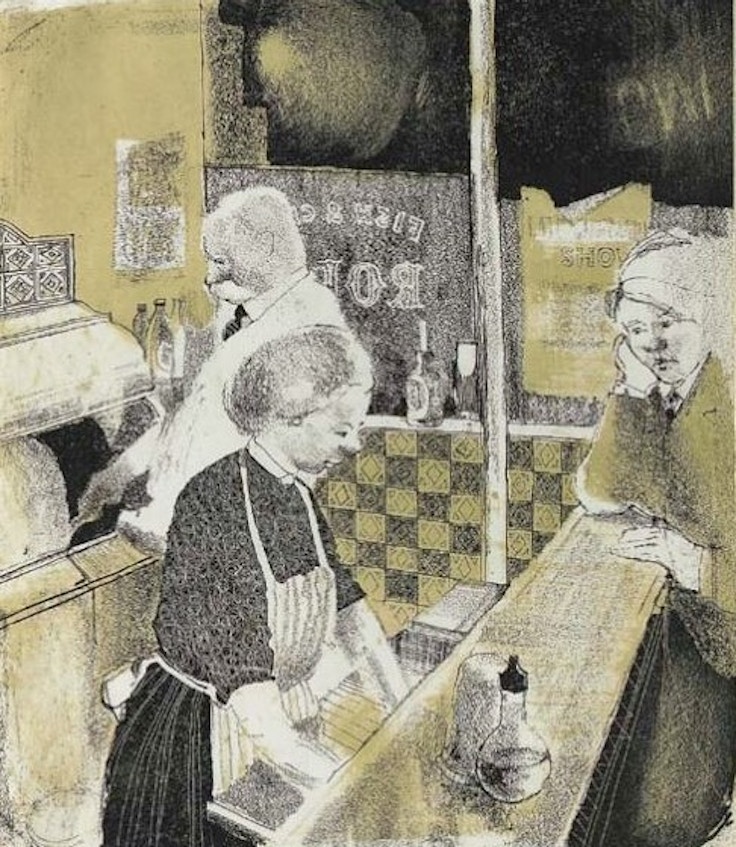 今回のセールでは、1000ポンドの入門レベルの作品から25万ポンド以上の高額作品まで、様々な価格帯でのホックニー作品が出品。例えば、10代のホックニーが制作したリトグラフ2点《Woman With A Sewing Machine》(予想落札価格1万〜1万5000ポンド)《Fish and Chip Shop》(1万5000〜2万ポンド)や、象徴的なプールの構図でつくられた《Lithographic Water Made of Lines, Crayon, and Two Blue Washes》(8万〜12万ポンド)、近年iPadを使ってつくられたドローイングなどがラインナップされている。