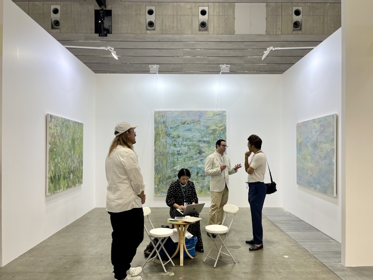 しかし、Pace以外の多くのギャラリーは、初日の売れ行きは芳しくなかったようだ。今年設立30周年を迎えたBLUMは、岡﨑乾二郎の大作絵画(16万ドル)やハ・ジョンヒョンの絵画(25万ドル)などの高額作品を含む7〜8点の作品をプリセールで販売したにもかかわらず、代表のティム・ブラムは初日の終わり、美術手帖に送ったメールで次のようなコメントを寄せている。