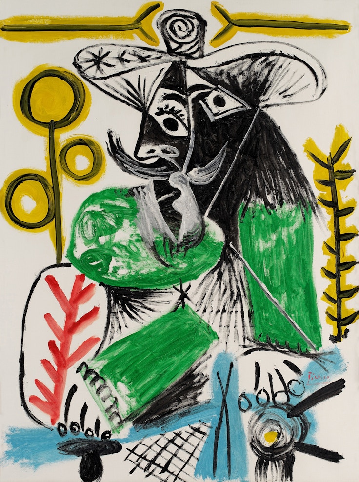 同オークションには、印象派、ポスト印象派、オルフィスム、シュルレアリスム、アメリカン・モダニズム、抽象表現主義といった幅広い美術運動の名品が集結。パブロ・ピカソによる《Homme assis(座る男)》(1969)は、彼の晩年の作品のなかでもとくに抽象的かつ記念碑的なものであり、推定価格は1200万〜1800万ドル(約18億〜26億円)とされている。