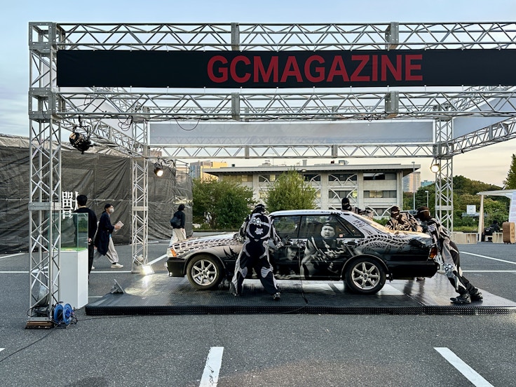 なかでも存在感を放つのは、若手を中心としたアーティストコレクティブ・GCmagazineによるインスタレーション《TURN OFF THE 5 PARADIGM LIGHTS》だろう。本作は、真夏の鈴鹿サーキットを手押しで一周するパフォーマンスと、その過程を記録した映像・写真を軸に構成されており、パフォーマンス中に撮影された写真でラッピングされた車両と、カラーチャート機能をもつ特製レーシングスーツを用いて、「写真における過程や労働の価値」を問いかけるものだ。