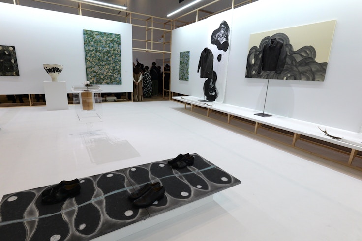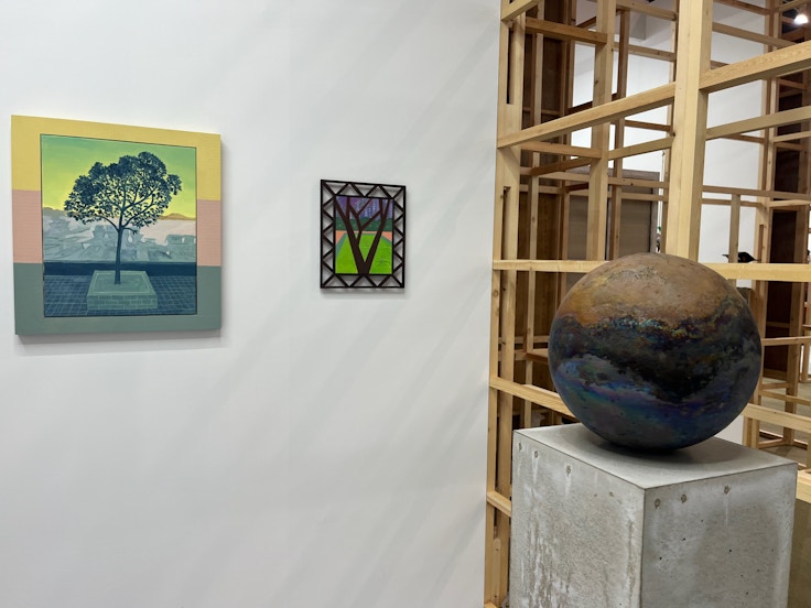 PARCEL(東京)とTHE SHOPHOUSE(香港)のブースでは、絵画とセラミックを軸に、ジョセフ・ジョーンズ、マサミツ、スティーブ・ハリソン、橋本知成の4名のアーティストを紹介。橋本の金属的な表面が現れた陶作品と、都市の色彩を独特の構図で表現するマサミツのここでしかない共演が楽しめる。