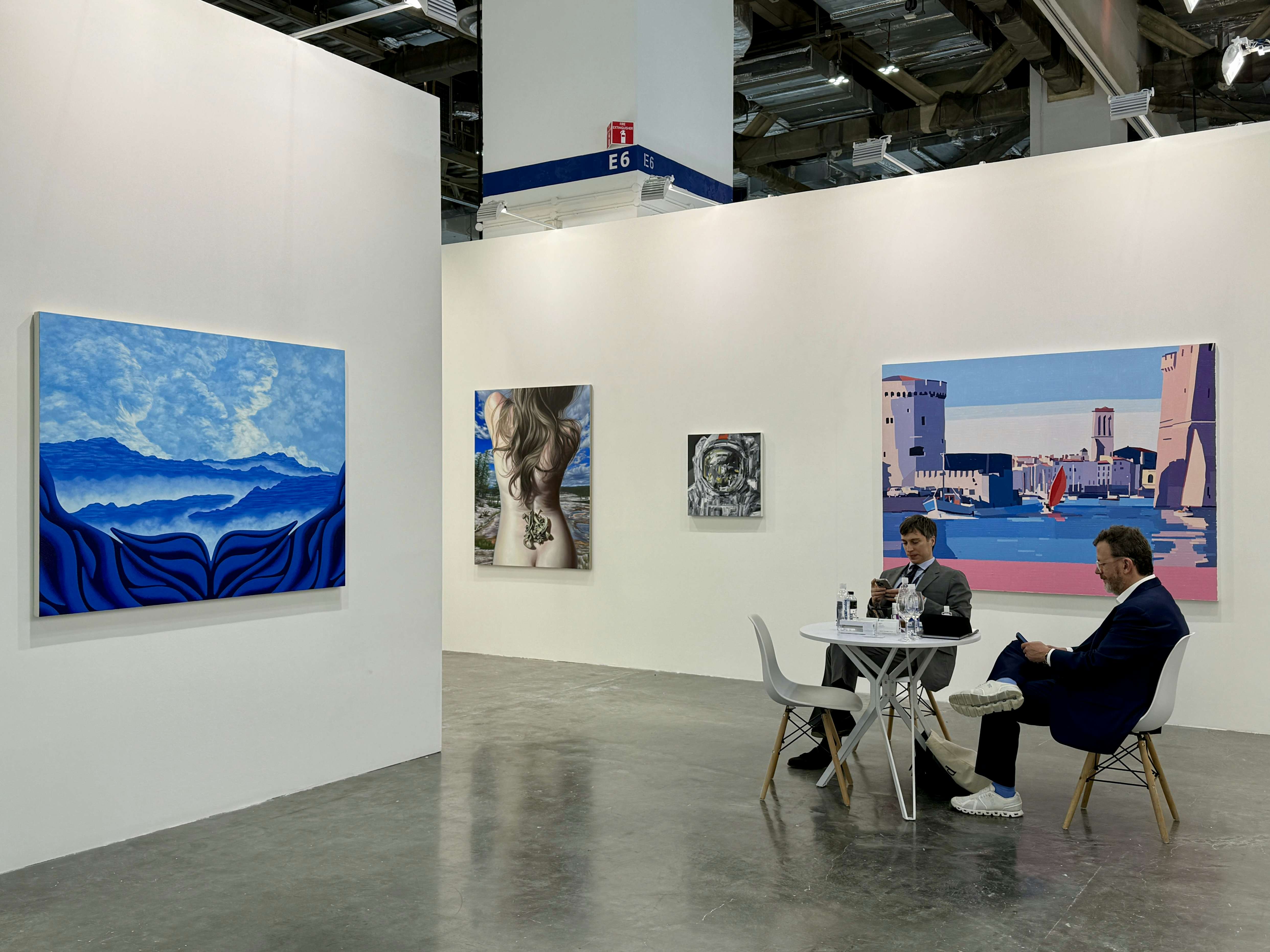 そうした状況のなか、今年のART SG初日には、いくつかの具体的なセールス報告も聞かれた。タデウス・ロパックは、ラキブ・ショーによるアクリル、エナメル、グリッター、ラインストーンを用いた作品(47万5000ポンド)をはじめ、李康昭、ザディ・シャ、オリバー・ビアらの作品を複数点成約させた(価格帯はいずれも10万ドル以下)。