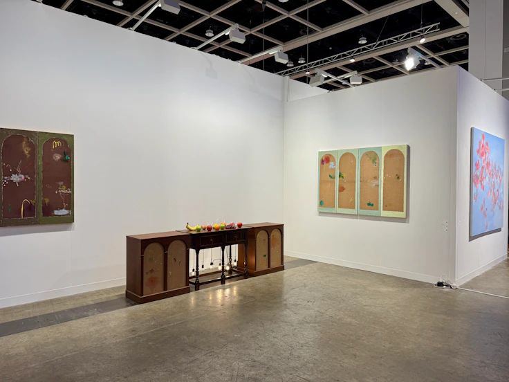 また、今年初めてメインセクター「ギャラリーズ」への出展を果たしたYutaka Kikutake Galleryは、毛利悠子やトレヴァー・ヤン、片山真理などによるグループ展を展開。代表の菊竹寛は、「香港では最終日まで作品が売れる傾向がある」としたうえで、「中東方面への移動が難しく、ヨーロッパも航空券の高騰が続くなかで、『今回の香港で何か作品を購入できれば』と考えるコレクターが多い」と指摘する。地政学的状況や移動コストの上昇が、香港への購買需要を押し上げている可能性を示唆した。