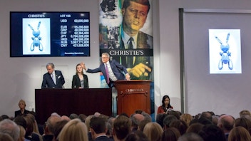 5月15日にクリスティーズ・ニューヨークで開催された戦後・現代美術セールで、ジェフ・クーンズの《ラビット》が9107万5000ドル(約100億円)で落札。昨年デイヴィッド・ホックニーが記録した、現存アーティストのオークションにおける過去最高額を更新した。