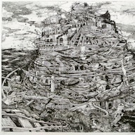 「私の使用している板紙凹凸版は、光沢白ボール紙を版に用いた技法です。まだまだ知名度も低く、発展途上の技法ですが、これを用いた作品を評価して戴けたことを嬉しく思います。以前から複雑な構造の鳥巣に魅力を感じ制作しており、本作ではピーテル・ブリューゲルの『バベルの塔』に感銘を受け、リアリティのある細密表現と幻想的な世界観の両立を目指し、取り組みました」