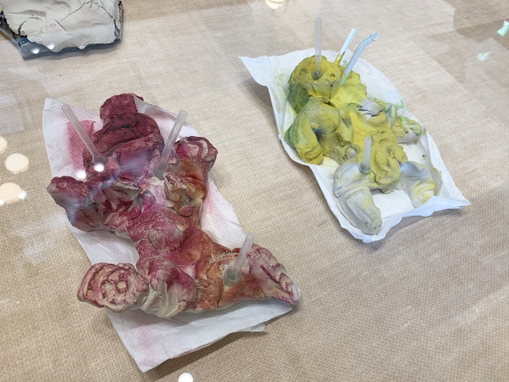 津波発生時に南三陸町の防災庁舎で避難を呼びかけ続け、多くの町民の命を救いながら自身は命を落とした遠藤未希。ホセは13年にも遠藤の声をもとにしたブロンズ彫刻を制作しているが、今回は紙粘土というメディウムで《数千年にわたる遠藤未希への想い》を発表。これらの作品キャプションには、子供に向けたふりがな付きの簡易版も用意されている。「地上にあるものはすべて死にゆくものですが、私たちは不在や喪失とともにあるのです」というホセの言葉通り、震災を未来に語り継ぐという姿勢が強く感じられる。
