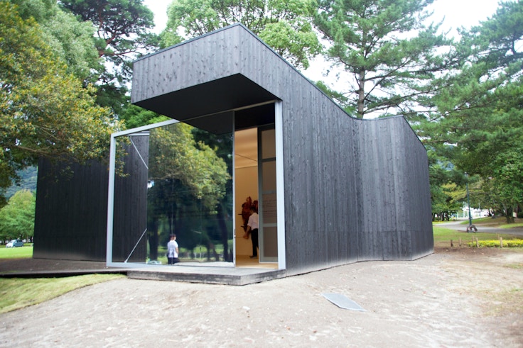 カプーアは展示を大きく3つに構成し、順番に鑑賞することを要求している。まずは光の99.96パーセントを吸収するペンタブラックを使用した《Void Pavillion V》(2018)の空間、つぎに、飯田高誉キュレーションによる中と外を身体的にとらえた展覧会「コンセプト・オブ・ハピネス」、そして、別府の空を取り込み景色を異化する《Sky Mirror》(2018)の空間だ。おおいた大茶会全体としてこれらを俯瞰したとき、「出会いの場」というエリア──おおいたの玄関口──の象徴として位置付けられている本展は、見えているもの/実在しているもの、内部(県民)/外部(観光客)といった二元軸ではなく、玄関口を経て大分県で展開されるカルチャーツーリズムの新たなあり方を示している。