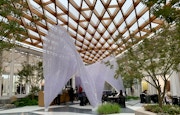 ホールNが完成したのは、会期直前の9月。ホールは3つの巨大なテントが連なって構成されており、それぞれが中庭と大屋根で緩やかにつながっている(中庭には休憩スペースがあるのも広いフェア会場を回るうえで大きなポイントだ)。