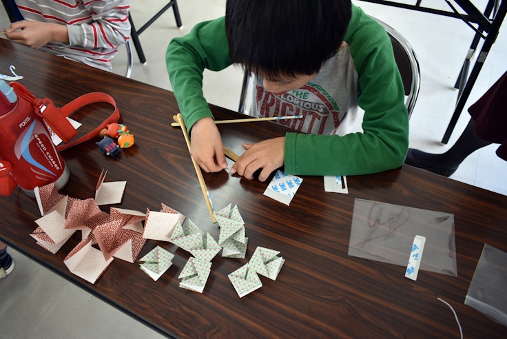 子供から高齢者まで、幅広い年齢層ワークショップ参加者は、ル・グエンが事前に用意した竹の骨組みをベースに、直接指導を受けながら作業を進行。「一見すると複雑ですが、意外とスムーズにつくることができました」「また違う模様の折り紙でつくってみたい」といった声が聞かれ、それぞれ完成した作品を手に満足そうな表情を見せていた。