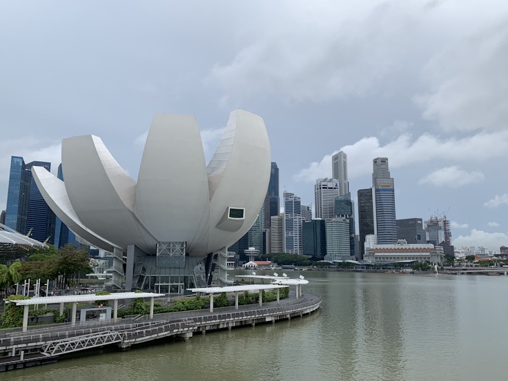 モシェ・サフディが設計した蓮のような印象的な建物。このアートサイエンス・ミュージアムには、約5000平米に21の展示スペースが設けられている。そのうち半分以上のスペースを占めた本展では、アジアの精神性や哲学を掘り下げ、これらの思想がミニマリズムに与える影響を探る。