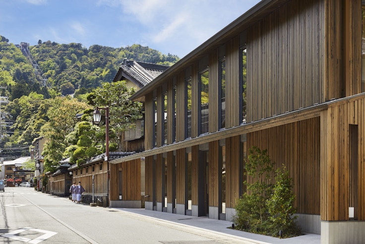 クリエイティブディレクションを行ったのは、建築家の松井亮(松井亮建築都市設計事務所主宰)。建物のサイン計画やロゴは廣村正彰(廣村デザイン事務所)、ユニフォームデザインは廣川玉枝(ソマルタ)、ウェブ映像制作はディスカバリー号が担当し、松井の指揮のもとでデザインチームが一体的に計画されている。「東京と城崎を3年にわたって往復し、内容を詰めていきました。日本の古来の様式を取り入れた空間のディティールにも注目していただけたら嬉しいです」と話す。