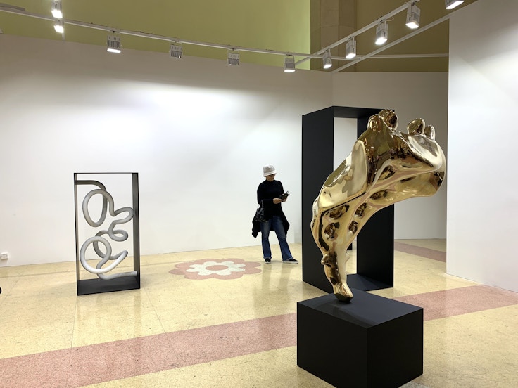 ドームホールにあるKukje Galleryでは、ベルリンを拠点に活動しているアーティスト・デュオ、エルムグリーン&ドラッグセットによる「身体」をモチーフした一連の新作を展示。マイケル・エルムグリーンが「人間の生物学的進化を思わせる」と話した《Tailbone》(2019)は初日、上海のコレクターに13万5000ユーロ(約1630万円)の価格で購入された。11月より、エルムグリーン&ドラッグセットが2016年にニューヨークのロックフェラー・センターに展示した巨大なインスタレーション《Van Gogh’s Ear》は、香港のK11アートファンデーションで常設展示になるという。