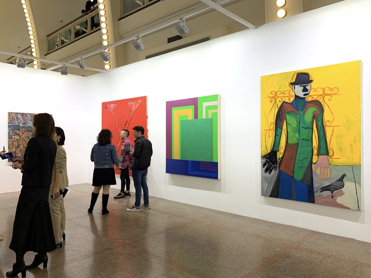 今年初出展となるギャラリーのなかでは、上海に新しいスペースをオープンし、現在ジェームズ・タレルの個展を開催しているアルミネ・レッシュが、ピーター・ハーレイやジェニーブ・フィギス、ヴォーン・ スパンなど9人のアーティストを紹介。初日には、ジェニーブ・フィギスの《A lady of Fashion》(2019)やヴォーン・ スパンの《Marked Man(Seeing red)》(2019)は、2万3500ユーロ(約280万円)と4万4500ユーロ(約540万円)の価格で売却された。