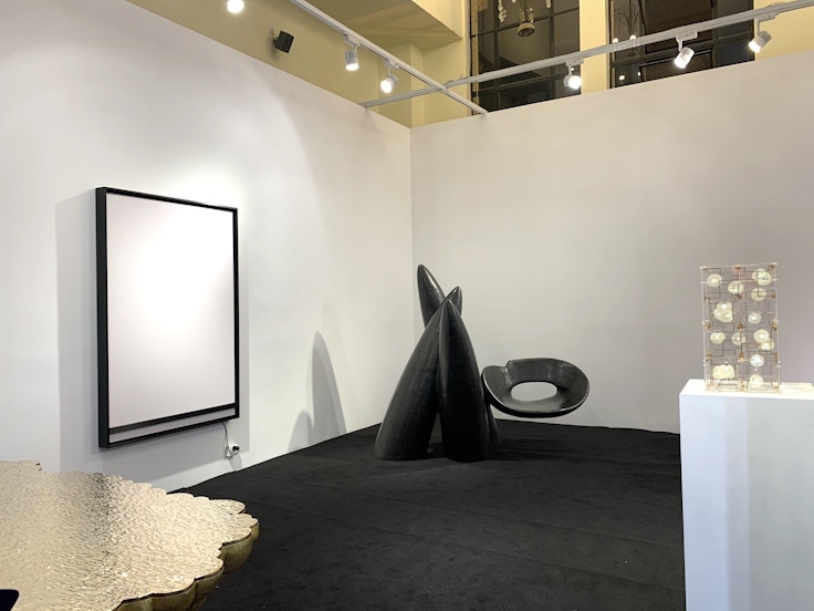 イーストホールにあるフリードマン・ベンダには、ロン・アラッドやチョイ・ビュンホーン、ミーシャ・カーン、フェイ・トゥーグッドらによる家具が並ぶ。当初、KAWSがデザインした家具も展示される予定だったが、先月サザビーズ香港で開催されたオークションの出品リストにあった、毛沢東のポートレイト写真をパロディ化したKAWSの作品が中国で激しい抗議を受け、同ギャラリーは今回KAWSの作品を取り下げたという。
