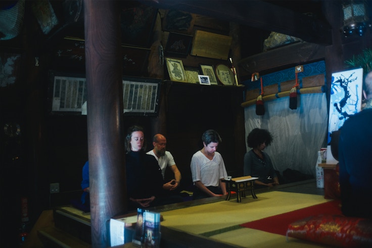 龍神伝説で知られている松尾観音寺の御堂の中で、座禅を体験。住職の木造隆誠(こつくりりゅうせい)は「最初から“無”になることを目指すのは難しい。まずは、畳に座り、ゆっくりと心を落ち着けて、いろんなことを考える時間を過ごしてほしい」と説明。また、「神仏習合」や「八百万(やおよろず)の神」という日本独特の宗教観を説き、あらゆるものに感謝することの大切さを語った。