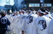 「初穂曳」は、神嘗祭に合わせ、その年に収穫した初穂を伊勢神宮へ奉納する祭り。外宮領で行われる「陸曳(おかびき)」と、内宮領で行われる「川曳(かわびき)」の2つがある。「陸曳」ではアーティストたちも、他の参加者とお揃いの白い法被に身を包み、祭りに参加した。