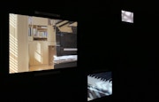 ニューヨークを拠点とするアーティスト・デュオ、ザックバランが坂本龍一と共同で制作した《async – volume》(2017)は、坂本が2017年に発表したアルバム『async』からの音楽をもとに、作曲家のスタジオとその周辺を舞台にした映像インスタレーション。暗い部屋に24台のビデオスクリーンが置かれる本作では、音楽と視覚について瞑想するような空間がつくりだされている。