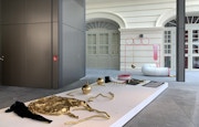 ジェン・リューの《Pink Slime Caesar Shift: Gold Edition》(2015-19)は、金の価値や性質を考察したライブパフォーマンスやヴィデオ、セットデザイン、インスタレーション、絵画からなる作品。富、労働、貿易の原理としての金、そして金を摂取することで身体と 「運命」がどのように変化するかなど、「金」をテーマに、多様な表現を展開している。