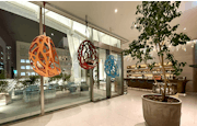 「LE CAFE V」では松岡亮の絵画作品3点が展示されているほか、「SUGALABO V」には井田幸昌の絵画2点が展示。ともに食事をしながらアートを楽しむことができるのが嬉しい。また両スペースとも家具とオブジェのコレクションである「ルイ・ヴィトン オブジェ・ノマド コレクション」が使用されているほか、「SUGALABO V」では吉岡徳仁が同店のためにデザインしたチャージャープレートも見ることができる。