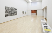 会場を進むと、参加者である14歳の中学生参加者が「身の回りにある“境界線”」を探し、それを文章に書いてもらい、地元新聞の連載として発表するプロジェクト《14歳と世界と境》を紹介。2013年のあいちトリエンナーレで始まったこのプロジェクトは、尾張と三河というふたつの地域に分かれ、奇しくもその境界を境川という川が流れていることに着想したのだという。大人と子どもの境目ともいえる14歳という年齢。中学生が書いた文章は新聞に連載形式で掲載され、様々な大きなニュースと並ぶ。さらには韓国や香港、岡山などでもプロジェクトを実施した。