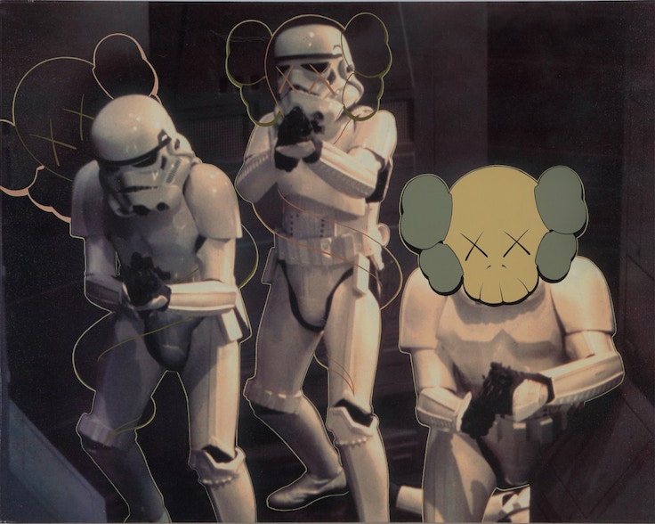 8日のセールでは、KAWSが初めて立体的に表現した、その代表的なキャラクター「COMPANION」が抱き合う作品《TOGETHER》が初めてオークションに出品。加えて、2000年に制作された、『スター・ウォーズ』シリーズに登場する銀河帝国のエリート宇宙兵をCOMPANIONに変身させた《UNTITLED(STORMTROOPERS)》や、円形キャンバスにトレードマークである「XX」のモチーフと、ポップで抽象的な要素を融合させた《Untitled(HTLA9)》などが7日のデイセールに登場する。